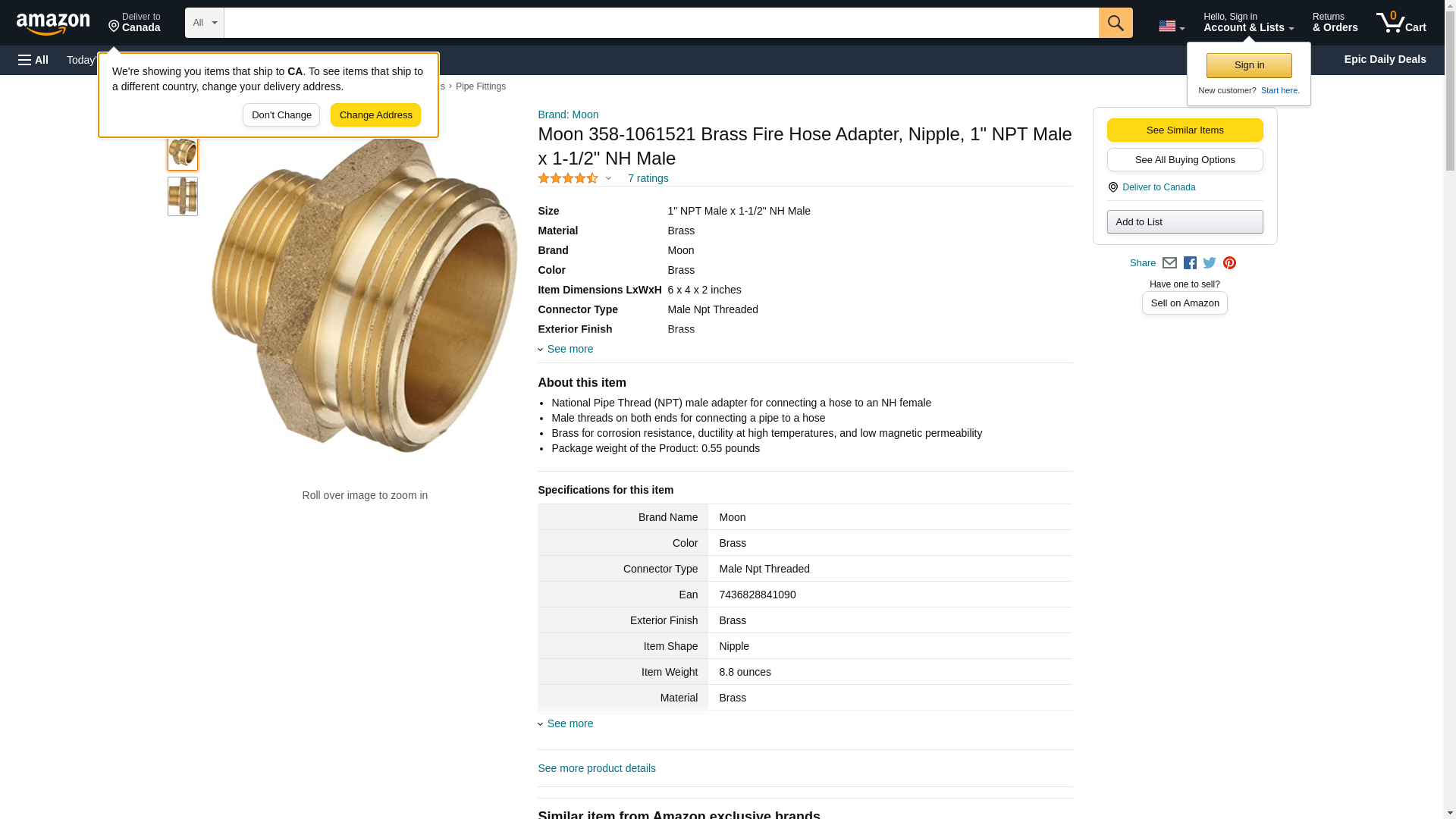 Moon 358-1061521 Brass Fire Hose Adapter, Nipple, 1" NPT Male x 1-1/2" NH Male