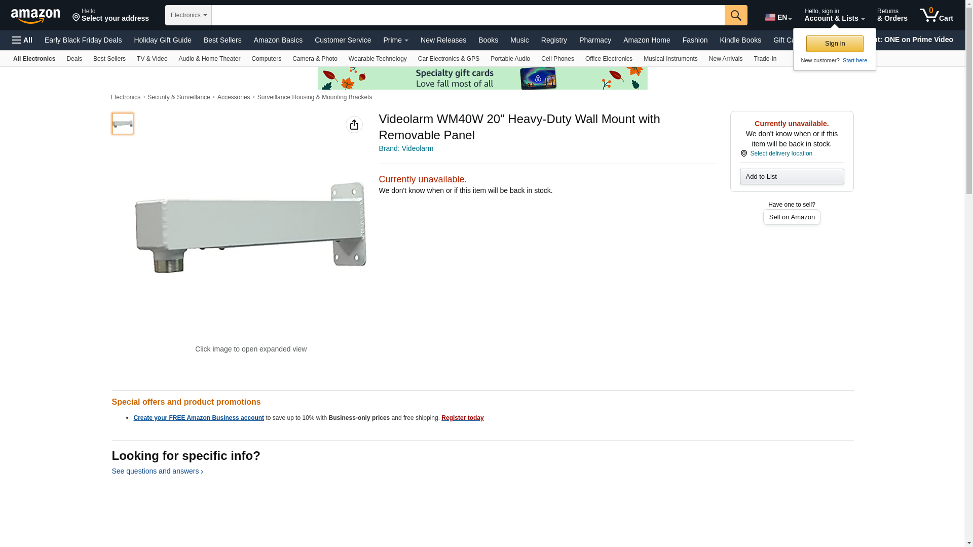 Videolarm WM40W 20" Heavy-Duty Wall Mount with Removable Panel