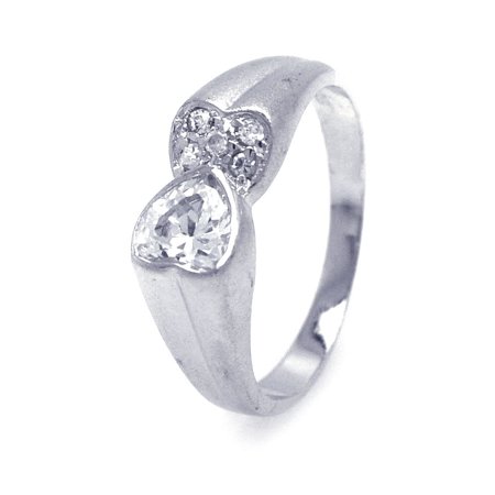 Sterling Silver Rhodium Plated Clear CZ Double Heart Ends Ring (Moon Collection)