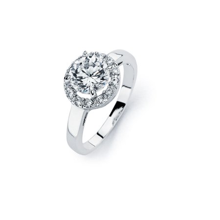 Sterling Silver Rhodium Plated Clear Round Center Cluster CZ Bridal Ring (Moon Collection)
