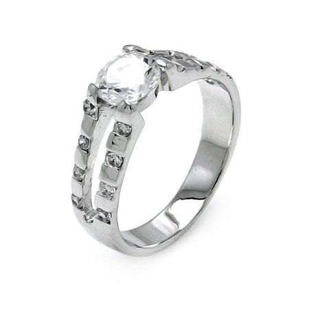 Sterling Silver Rhodium Plated Clear Round Center CZ Bridal Ring (Moon Collection)