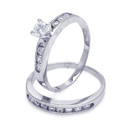 Sterling Silver Rhodium Plated CZ Engagement Ring Set (Moon Collection)