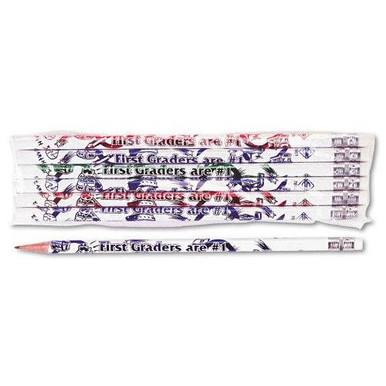 MOON PRODUCTS, Decorated Wood Pencil, First Graders Are #1, #2, White Brl, Dozen