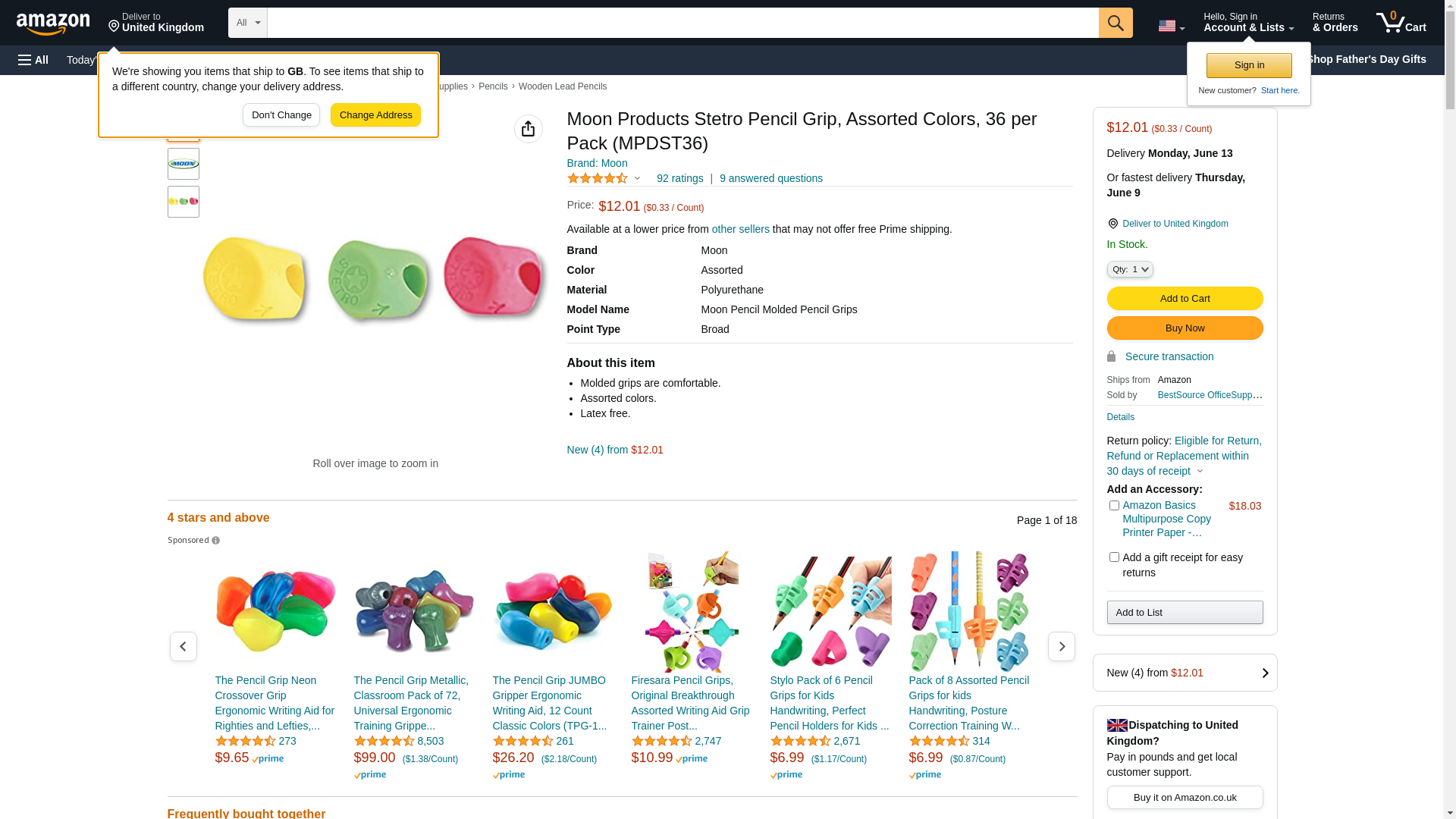 Moon Products Stetro Pencil Grip, Assorted Colors, 36 per Pack (MPDST36) by Moon