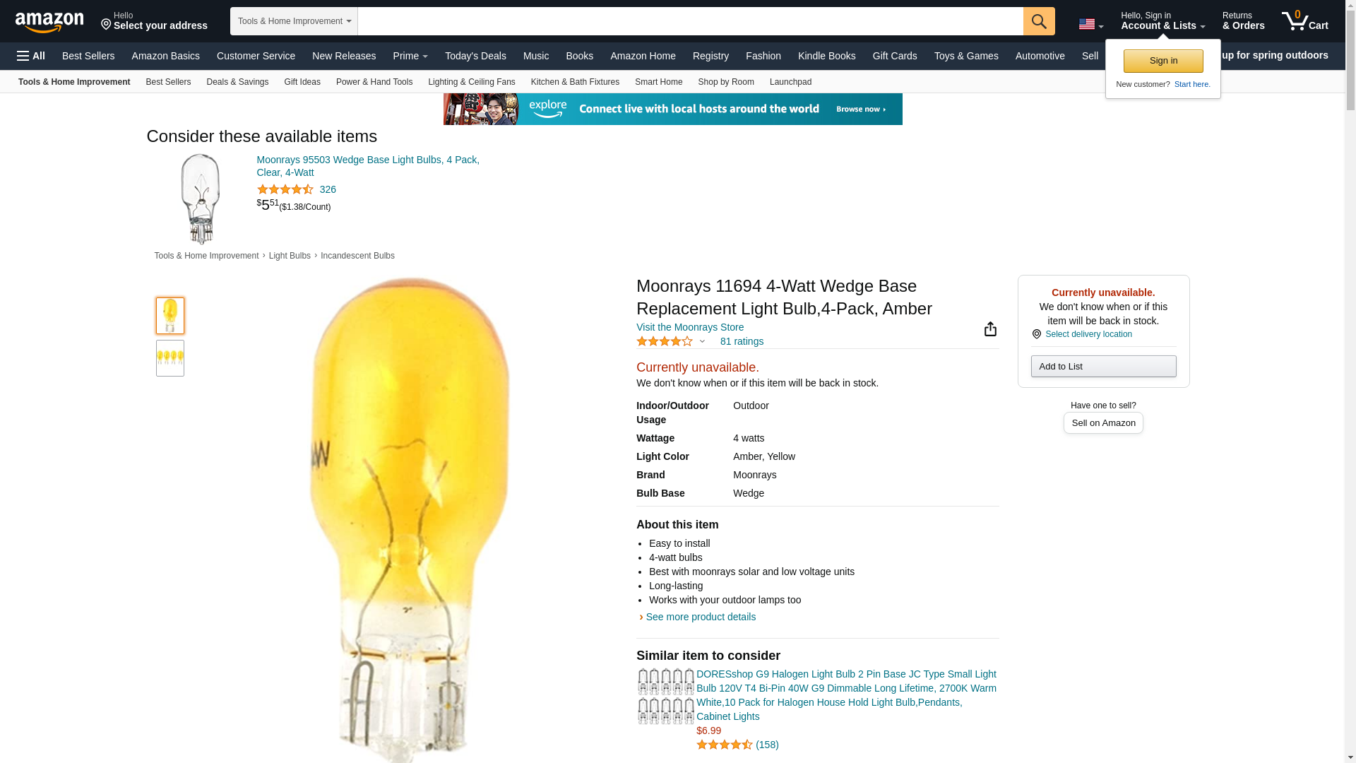 Moonrays 11694 4-Watt Wedge Base Replacement Light Bulb,4-Pack, Amber