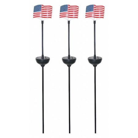 The Solar Powered American Flag LED Stake Light is a fantastic way to show your American spirit all year long or add a decorative touch to your backyard or landscape, all while taking advantage of solar energy. Made of plastic and metal construction, the pack of American Flag Stake Lights provides a display warm white LED lighting. The LED bulb will never need to be replaced and will remain cool to the touch at all times, providing safe lighting that will not burn or heat-up. With no wiring required, installation, long-term energy savings and becoming eco-friendly has never been easier. Moonrays solar lights gather energy from the sun during the day, and then automatically come on at dusk to provide outdoor lighting where you want it. This can be a perfect item to give as a gift and a popular decorative piece for July 4th or Memorial Day. The American Flag Stake Lights have a 30 in. above the ground height. Let Moonrays help make your outdoor settings as livable, enjoyable and charming as any room in your home. The Solar Powered American Flag Stake Light comes with a 1-year limited warranty, provided to the original purchaser, which protects this product from manufacturing defects in material, assembly and workmanship.