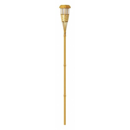 Add a festive touch to your yard with the Moonrays Outdoor Plastic Solar-Powered Summer Party Torch. It charges throughout the day and comes on automactically at night. Made of durable plastic, this party torch looks like real bamboo, while the two amber LEDs simulate the flicker of fire. The LED bulb never needs to be replaced and remains cool to the touch at all times for added safety. One rechargeable battery is included that gives you light for up to eight hours on a full charge. This torch has a 59-1/2 in. above-ground height and is a safe alternative to oil torches and candles. Pair it with Moonrays Tiki Warrior (model 95960) and Island Princess (model 95962), both of which are sold separately.