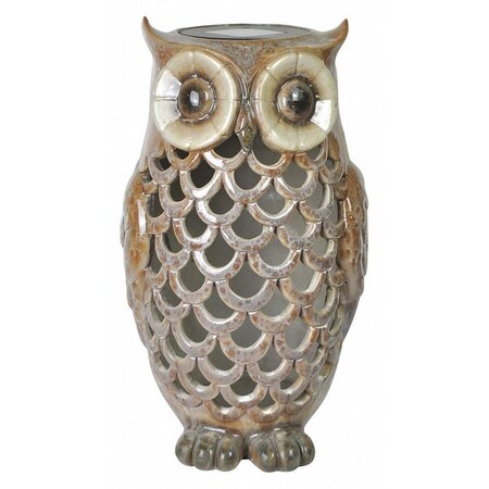 2 popular decorating trends collide in Moonrays Ceramic Owl: Owls and High Gloss accents. This owl is perfect for tabletops or to add to a lightly wooded area. After getting 8 hours of direct sunlight, the solar powered LED will automatically illuminate at night.
