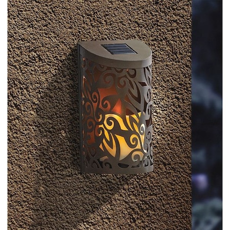 Moonrays 91833 Solar Powered Wall Sconce with Flickering Candle, Bronze