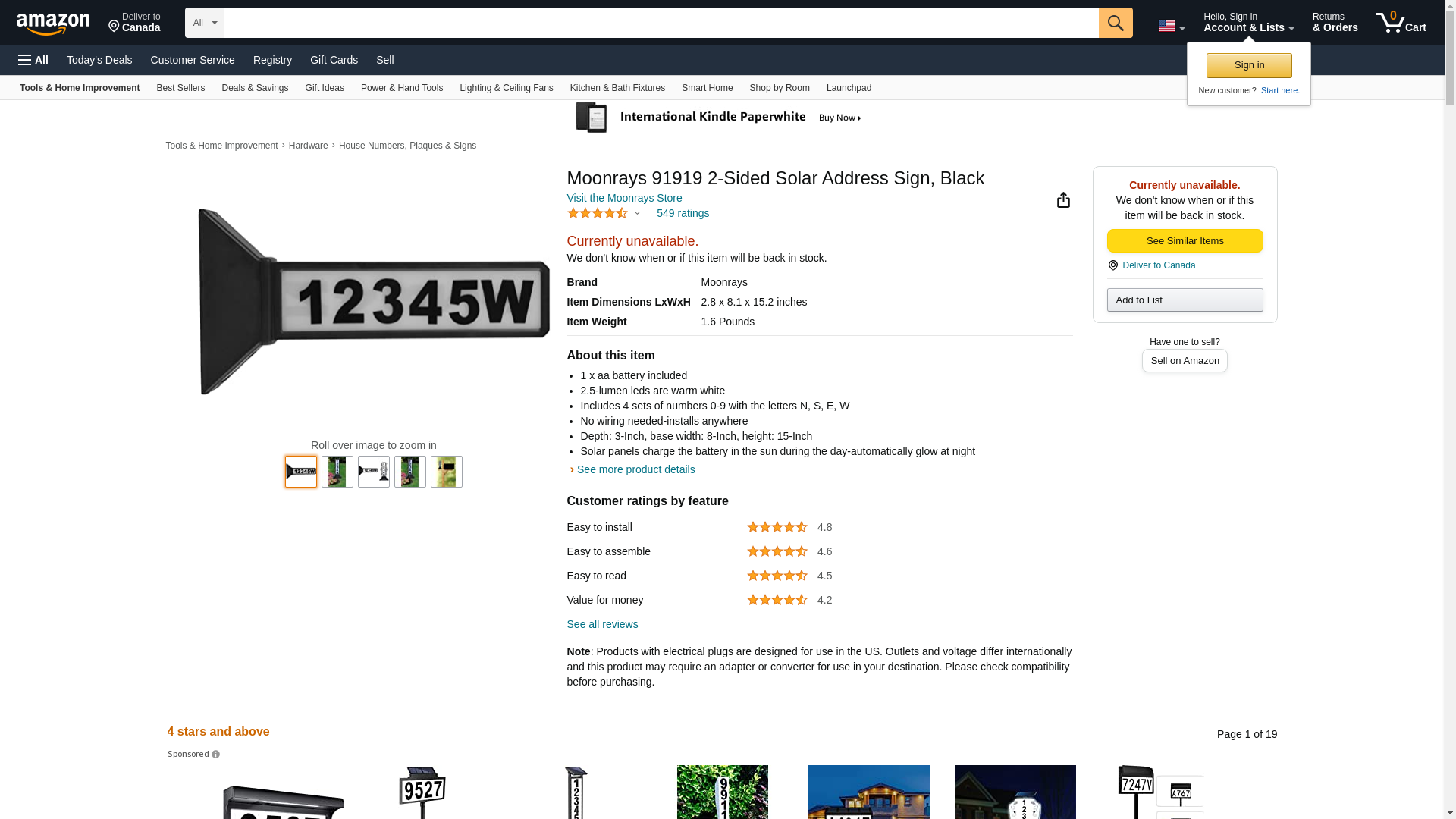 Moonrays 91919 2-Sided Solar Address Sign, Black
