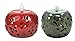 The Moonrays' flicker lanterns are a safe alternative to oil-based firepots. The solar powered amber LED flickers to look like a real flame on top, while the internal white LED illuminates center and projects pattern on surfaces. The 2 pack included 1 each of cinnamon and sage from the popular outdoor color palette.