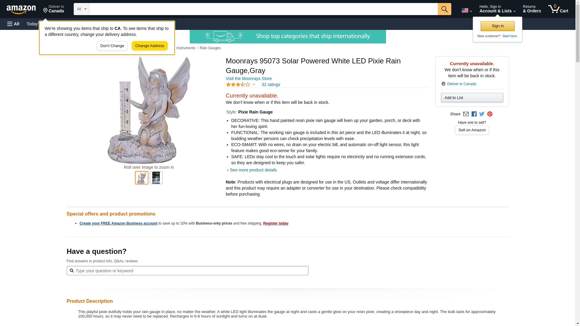 Moonrays 95073 Solar Powered White LED Pixie Rain Gauge,Gray