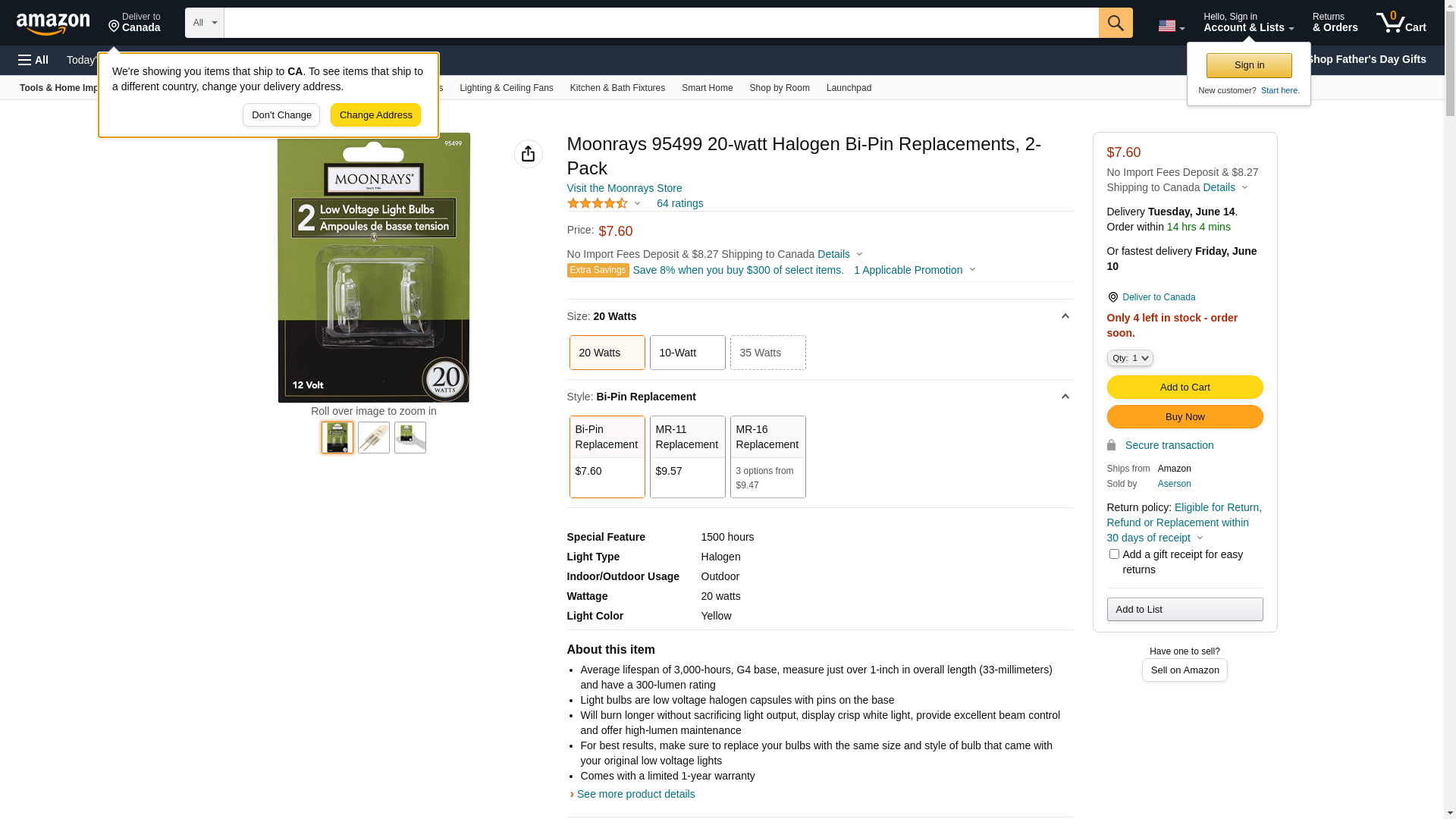 The Moonrays 20-Watt Halogen Bi-Pin Replacement Light Bulbs are compatible and ideal for 12-Volt Low-Voltage landscape lighting. This 2-pack of 20-Watt, 12-Volt halogen bulbs have an average lifespan of 3,000-hours, a G4 base, measure just over 1 in. overall length (33-millimeters) and have a 300-lumen rating. These JC Type halogen light bulbs are Low-Voltage halogen capsules with pins on the base. These bulbs will burn longer without sacrificing light output, display crisp white light, provide excellent beam control and offer high-lumen maintenance. Try to handle halogen bulbs with a cloth rather than bare hands. The oils on your fingers can cause a "hot spot" on the bulb that gets hotter than any other part, causing premature bulb failure. For best results, make sure to replace your bulbs with the same size and style of bulb that came with your original Low-Voltage light. Let Moonrays help make your outdoor settings as beautiful, livable and enjoyable as any room in your home. The Moonrays 20-Watt Halogen Bi-Pin Replacement Light Bulbs come with a 1-year limited warranty provided to the original purchaser, which protects this product from manufacturing defects in material, assembly and workmanship.