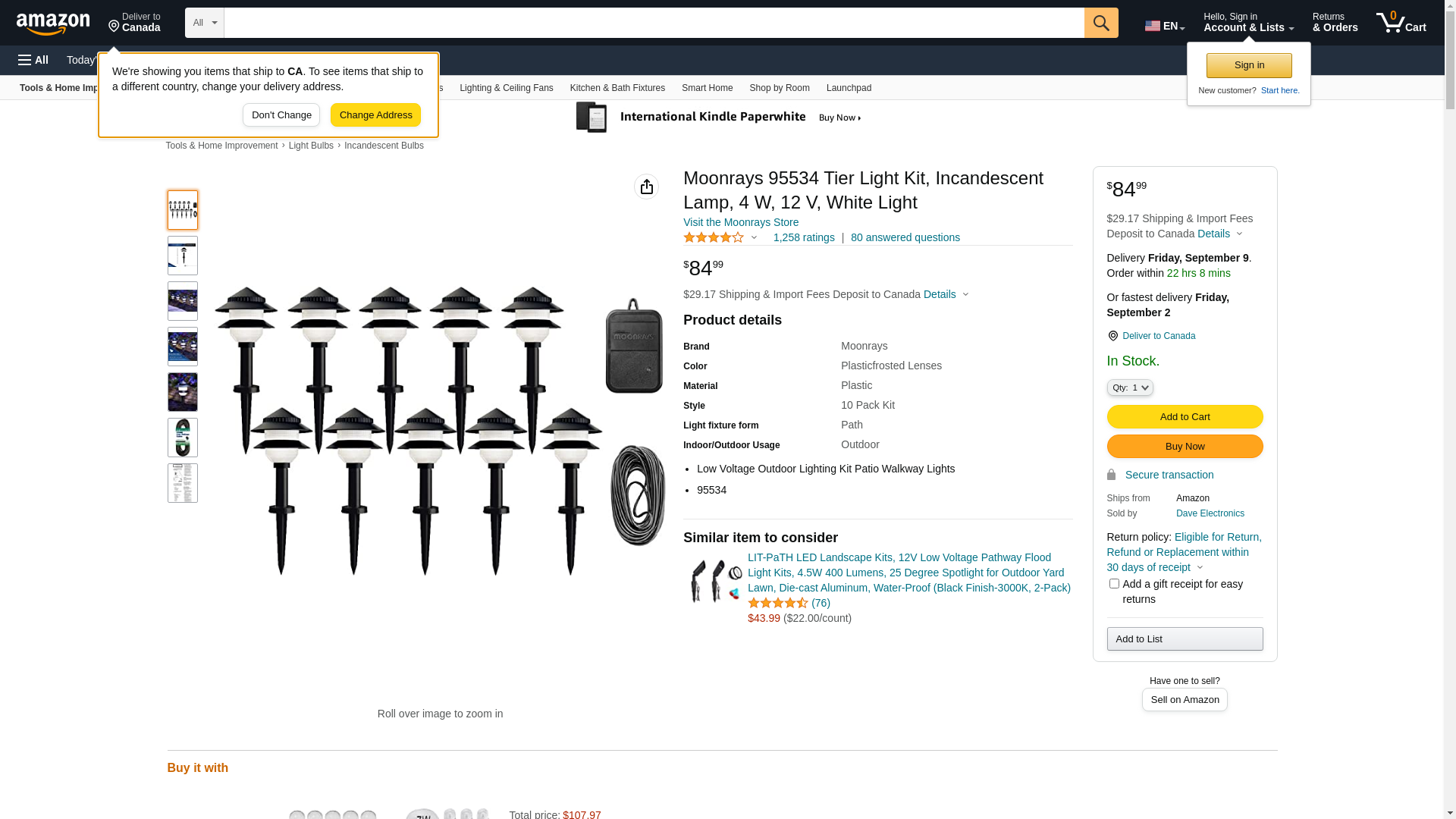 The Moonrays Outdoor Black Low-Voltage 4-Watt 2-Tier Path Lighting Kit adds a decorative touch to your pathway, patio or garden and provides a variety of lighting options for landscape design. Made of durable plastic, the (10) 2-tier lights have a white frosted plastic lens to provide a 360? display of warm white lighting. The 48-Watt control unit is operated by a photocell and includes dusk-to-dawn operation so programming is quick and easy. This kit comes with 50 ft. of 18-Gauge Low-Voltage cable so you can properly set up your light design. Each 2-tier light provides excellent illumination, has a 9 in. above ground height, includes a connector and 4-Watt bulb, and takes the replacement bulb #95503 and cUL listed for your family's protection. This kit is designed to provide additional safety and security while enhancing the beauty of your residence. Let Moonrays help make your outdoor settings as livable, enjoyable and charming as any room in your home. The Moonrays Outdoor Black low-voltage 4-Watt 2-Tier Path Lighting Kit comes with a limited warranty that?s provided only to the original purchaser that this landscape lights will be free from manufacturer defects in material, assembly, and workmanship under normal use for a period of one year from the date of the original purchase.