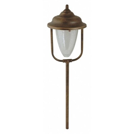 The Moonrays Outdoor Splashed Gold Low-voltage 20-Watt Metal Light adds a decorative touch to your pathway, patio or garden and provides a variety of lighting options for landscape design. Made of die-cast aluminum, the elegant Spanish gold ?lantern? shaped light has a seeded glass lens to provide a 360? display of warm white light. This light can also be used in combination with other low-voltage lights and control boxes for a custom landscape design. The Spanish gold finished lamp provides excellent illumination, has a 27.5 in. above ground height, includes a connector and 20-Watt bulb, takes the replacement bulb #95518 and is cUL listed for your family?s protection. Let Moonrays help make your outdoor settings as livable, enjoyable and charming as any room in your home. The Moonrays Outdoor Splashed Gold Low-voltage 20-Watt Metal Light comes with a 1-year limited warranty provided to the original purchaser, which protects this product from manufacturing defects in material, assembly and workmanship.