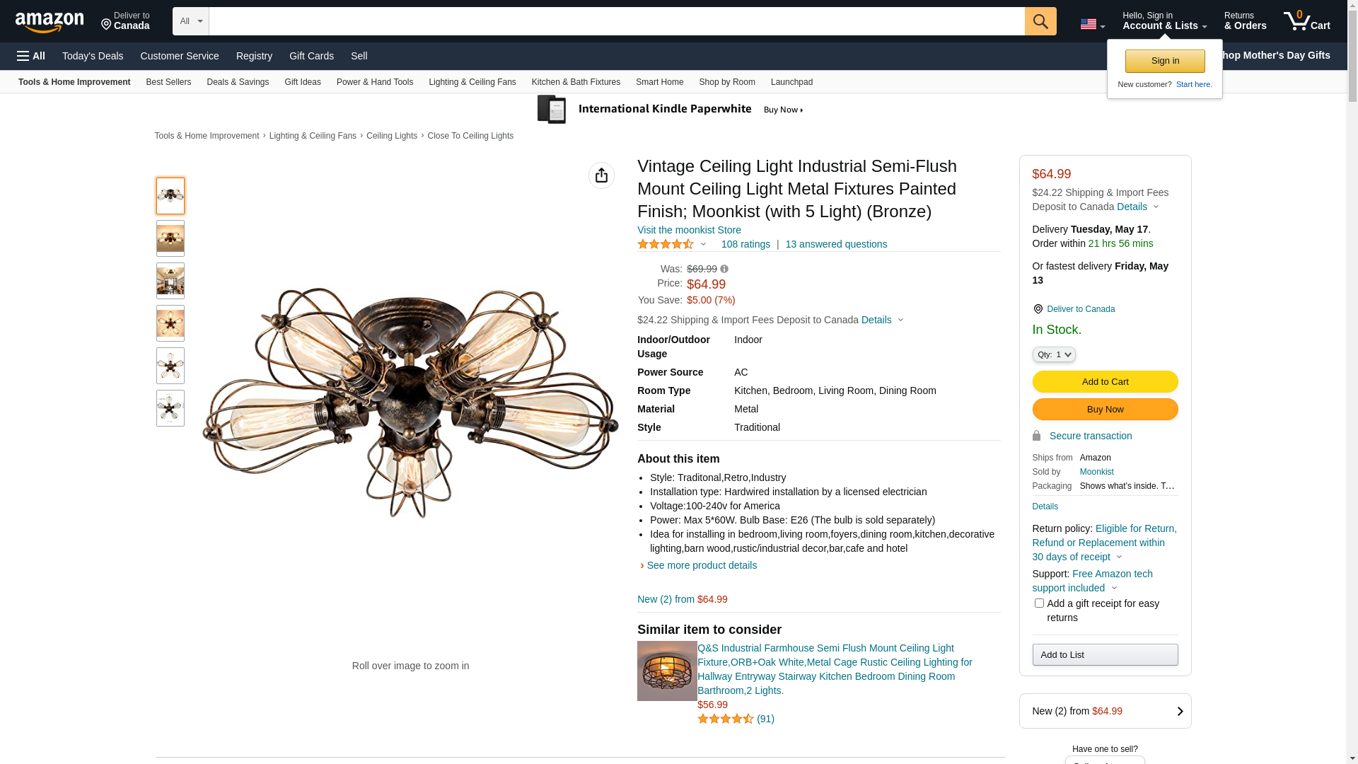 Vintage Ceiling Light Industrial Semi-Flush Mount Ceiling Light Metal Fixtures Painted Finish; Moonkist (with 5 Light) (Bronze): Maxedbuy.com