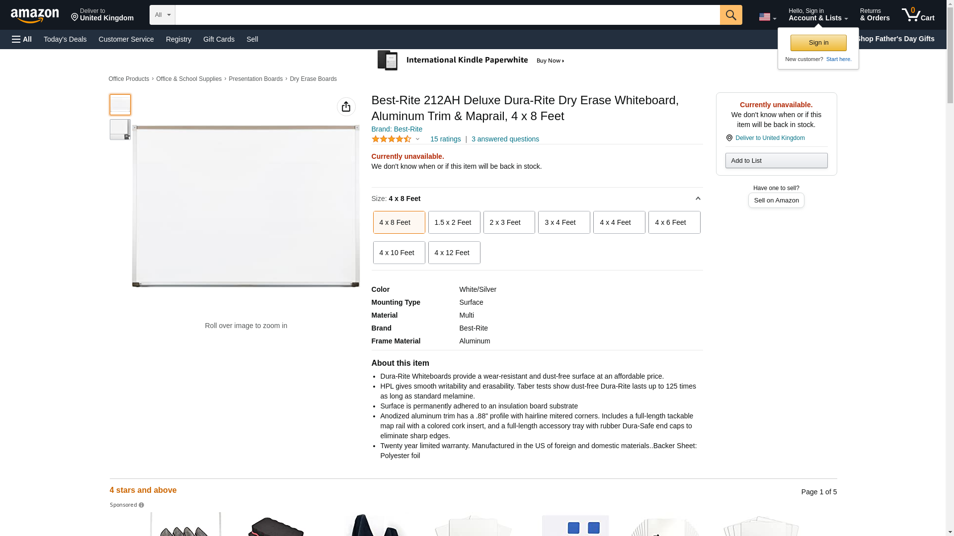 Best-Rite 212AH Deluxe Dura-Rite Dry Erase Whiteboard, Aluminum Trim & Maprail, 4 x 8 Feet