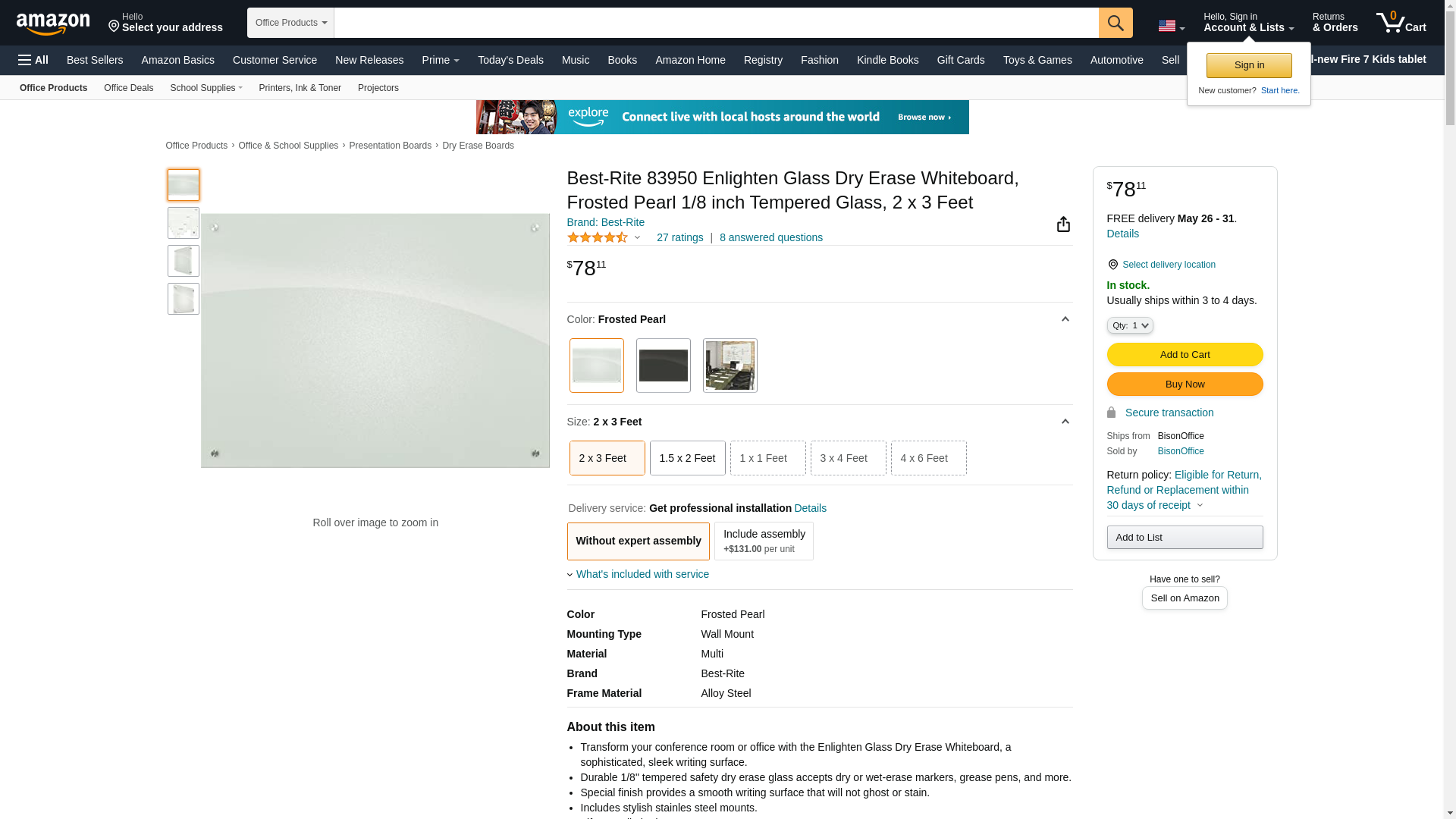 Best-Rite 83950 Enlighten Glass Dry Erase Whiteboard, Frosted Pearl 1/8 inch Tempered Glass, 2 x 3 Feet