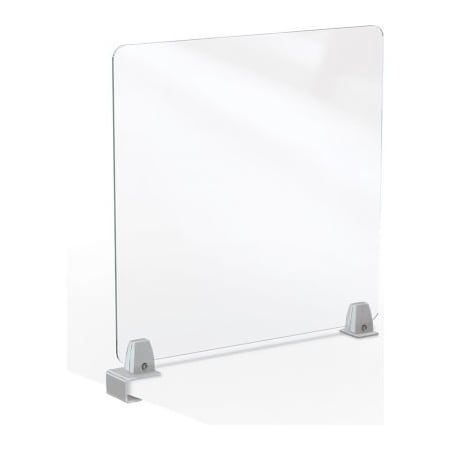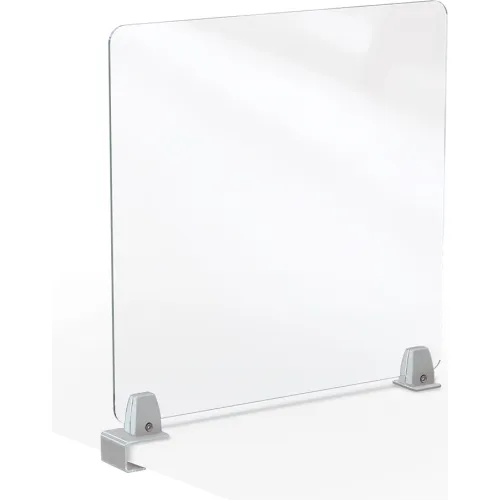 Keep your students, staff, and customers safer and more protected from the spread of germs with the MooreCo acrylic desktop divider. It is available with center clamp to divide a desktop for more than one user. Use more than one to create dividers on each side of a table. It is great for use in classrooms, offices, or any customer-facing applications. Powder-coated aluminum mounts feature a rubber pad to protect surfaces. This 24"" x 23"" divider fits virtually any desktop up to 1.6"" thick. Mix and match sizes to fit your desks and tables.