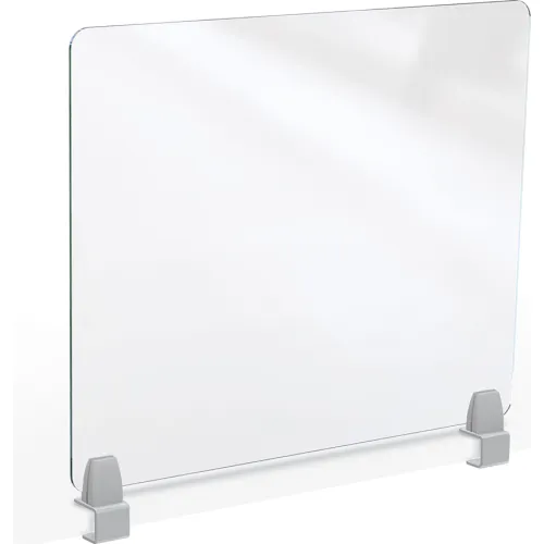 Keep your students, staff, and customers safer and more protected from the spread of germs with the MooreCo acrylic desktop divider. Available with edge clamp for mounting on the edge of the desktop. Use more than one to create dividers on each side of a table. Great for use in classrooms, offices, or any customer-facing applications. Powder-coated aluminum mounts feature a rubber pad to protect surfaces. This 24"" x 29"" divider fits virtually any desktop up to 1.6"" thick. Mix and match sizes to fit your desks and tables.