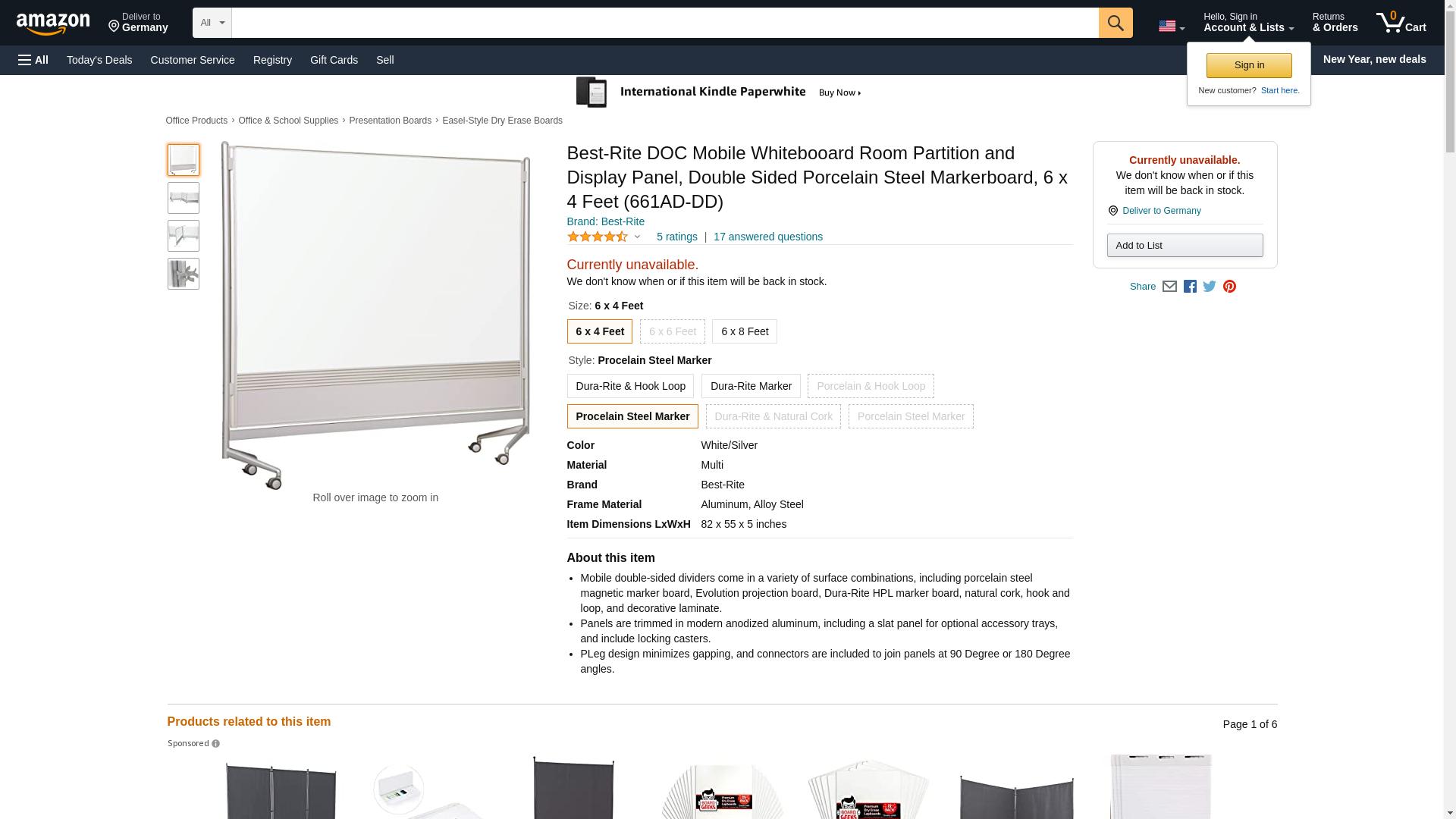 Best-Rite DOC Mobile Whitebooard Room Partition and Display Panel, Double Sided Porcelain Steel Markerboard, 6 x 4 Feet (661AD-DD)