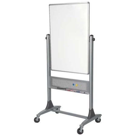 Reversible Board Is Designed For Presentations, Meetings And Training With Twice The Writing Or Tack Surface Of A Traditional Wall-mounted Board. Surface Rotates 360 Degrees On A Pivot Hinge And Locks Into Place With The Turn Of A Knob. Board Has A Magnetic Porcelain Surface On Both Sides And Anodized Aluminum Trim. Wide-base Design Offers Stability And Includes 3" Locking Casters For Mobility.