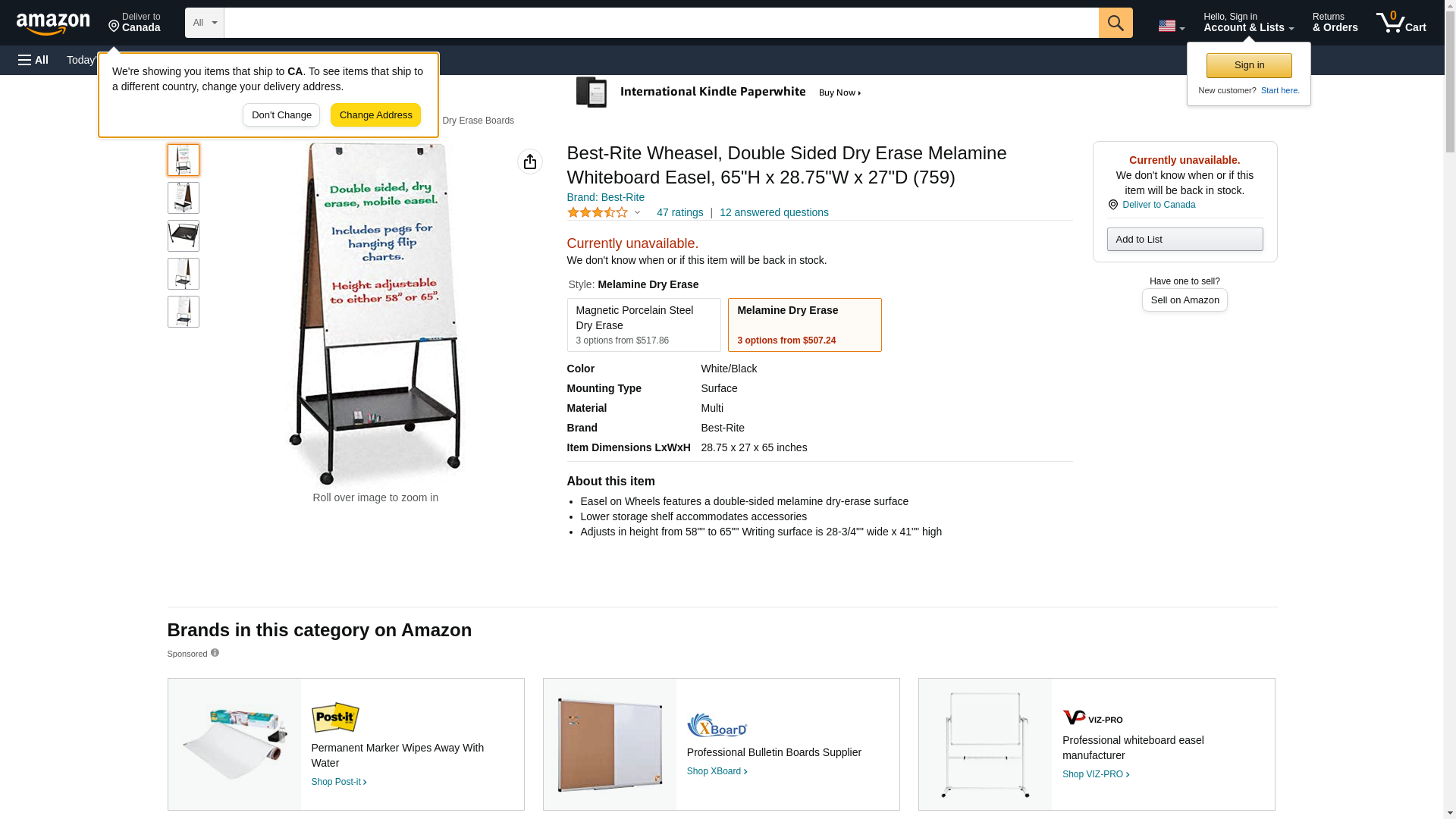 Best-Rite Wheasel, Double Sided Dry Erase Melamine Whiteboard Easel, 65"H x 28.75"W x 27"D (759)