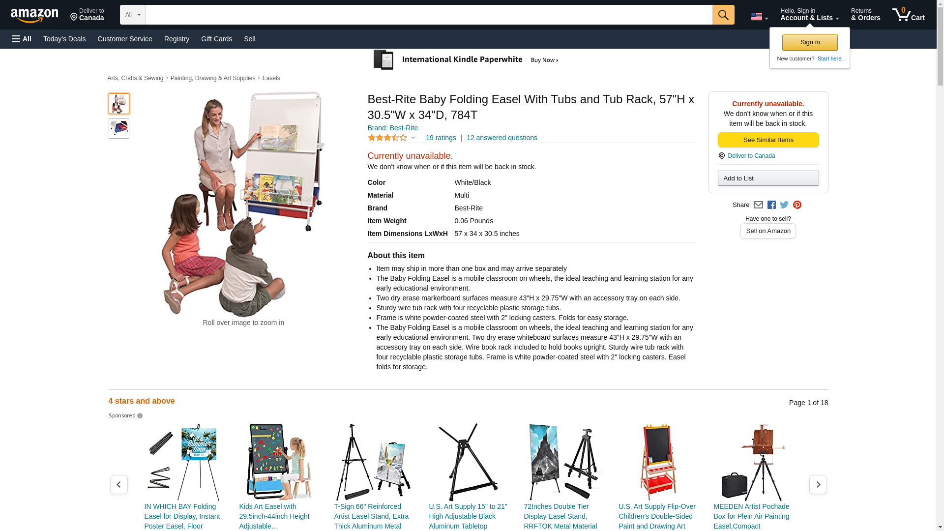 Best-Rite Baby Folding Easel With Tubs and Tub Rack, 57"H x 30.5"W x 34"D, 784T
