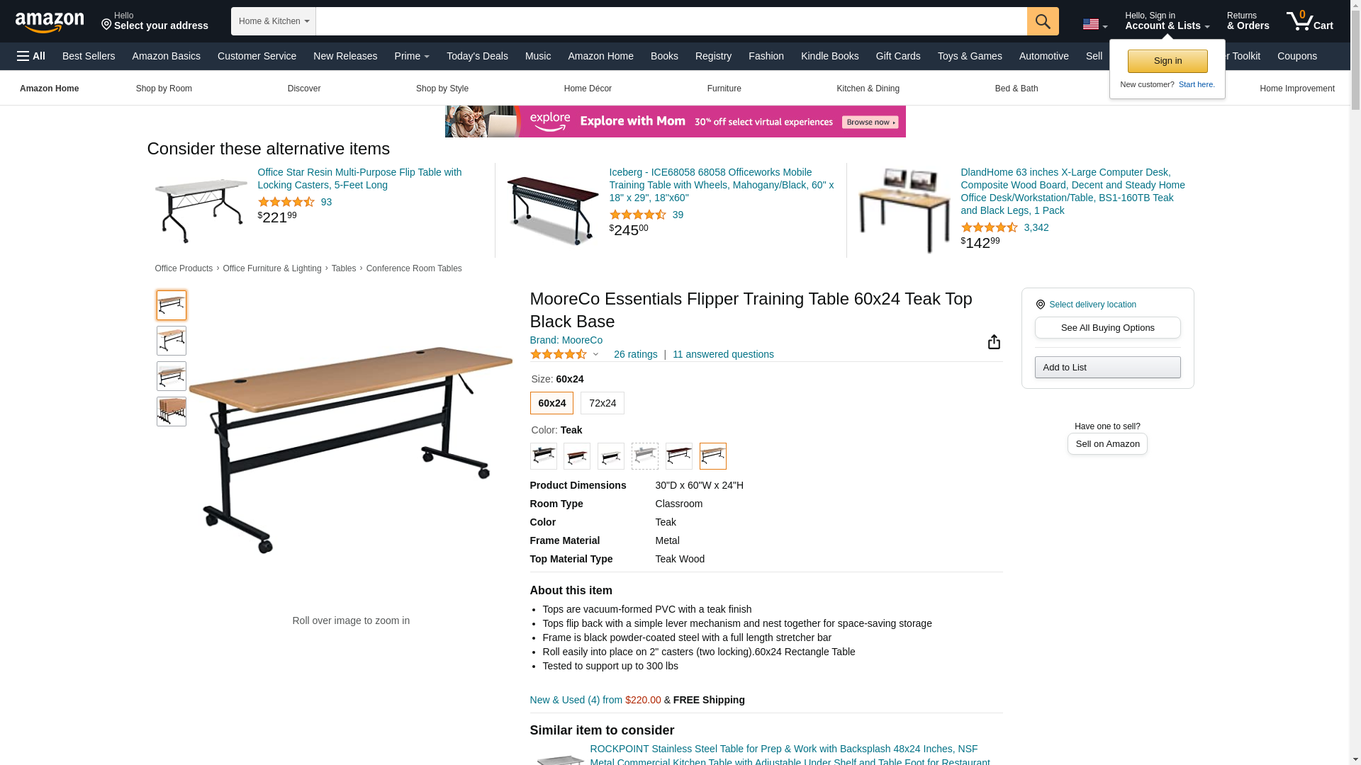 MooreCo Essentials Flipper Training Table 60x24 Teak Top Black Base