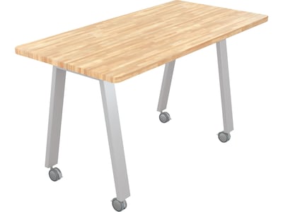 MooreCo Compass Makerspace 72" Table with Butcher Block, Beige/Platinum (91696-D-BUTCHER) | Quill.com