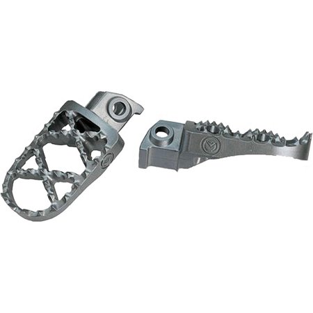 Moose footpegs are a great add-on for any off-road bike. <ul> <li>Constructed from cast, heat treated and hardened stainless steel</li> <li>Width (57mm) and length (90mm); slightly convex platform for better boot positioning and grip when leaning forward or back</li> <li>Larger surface area with serrated teeth for positive gripping</li> <li>Made for the aggressive rider</li> <li>Available with 1/2" rear offset to allow more space</li> <li>Use your OEM springs, unless otherwise noted</li> <li>Made in the USA</li> </ul>Model Notes:CRF50/70/100 2000-2011, KLX110 all years, and KLR 650 1987-2011 require spring kit sold separately.