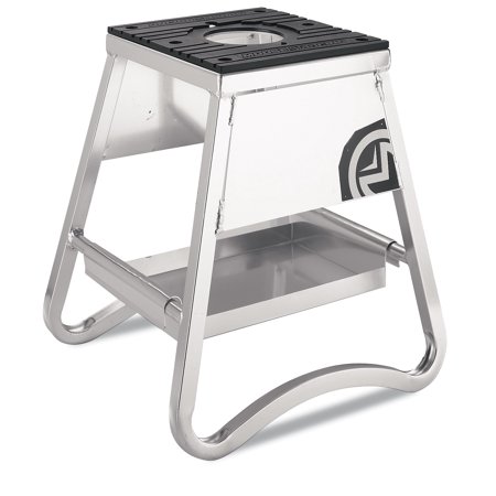 <ul> <li>Constructed from 6061 T4 aluminum</li> <li>Exclusive Moose Racing anti-slip rubber platform pad</li> <li>Extra thick aluminum platform with reinforced side panels for durability</li> <li>Large oil drain hole</li> <li>Removable tray for holding tools, parts or oil catch pan</li> <li>Arched base offers excellent stability on uneven surfaces</li> <li>17" T, top 10" x 11"</li> </ul>