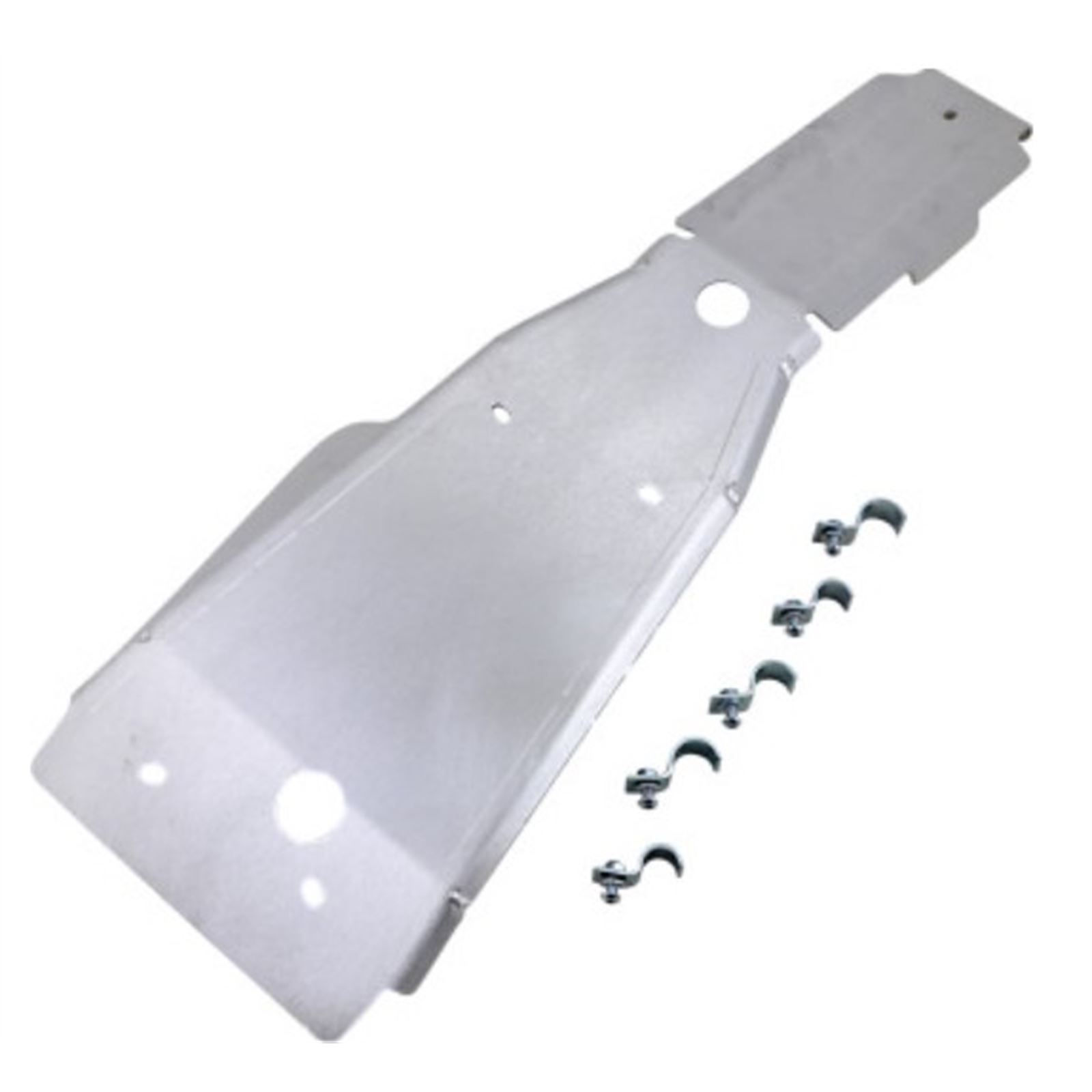 - Heavy-duty aluminum skid plate protects the frame engine case and undercarriage from rocks and debris