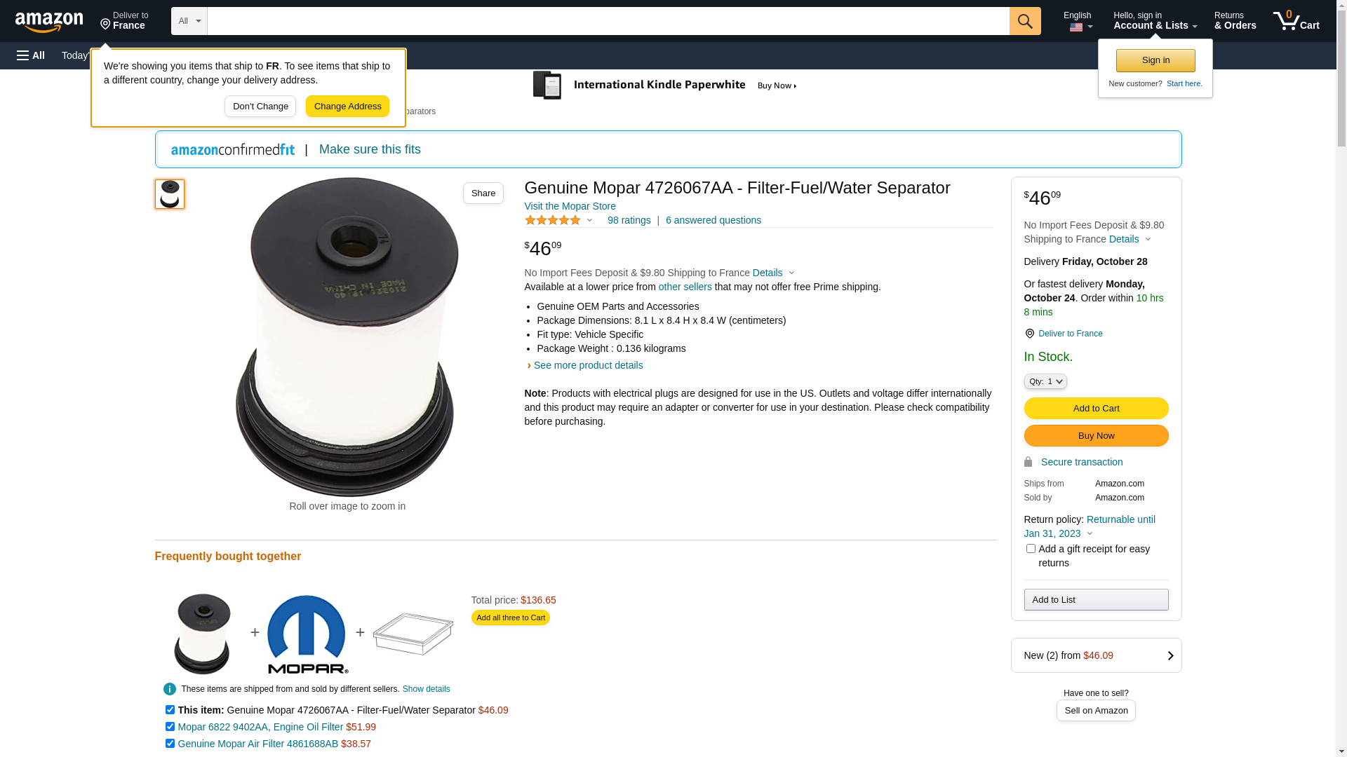 Genuine Mopar 4726067AA - Filter-Fuel/Water Separator