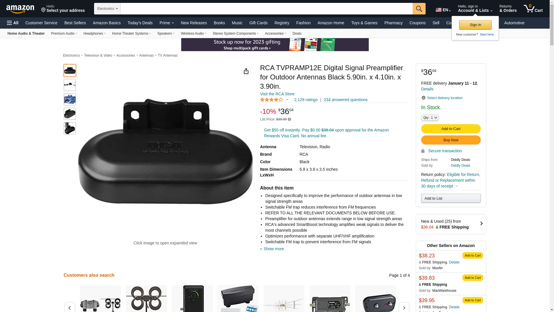 RCA TVPRAMP1Z Preamplifier for Outdoor Antenna. Designed specifically to improve the performance of outdoor antennas ...