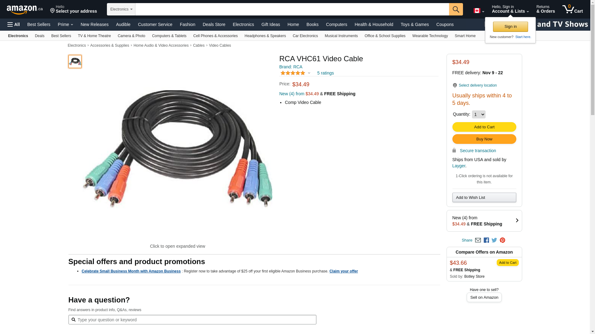 RCA Video Cable (VHC61) (Discontinued by Manufacturer)