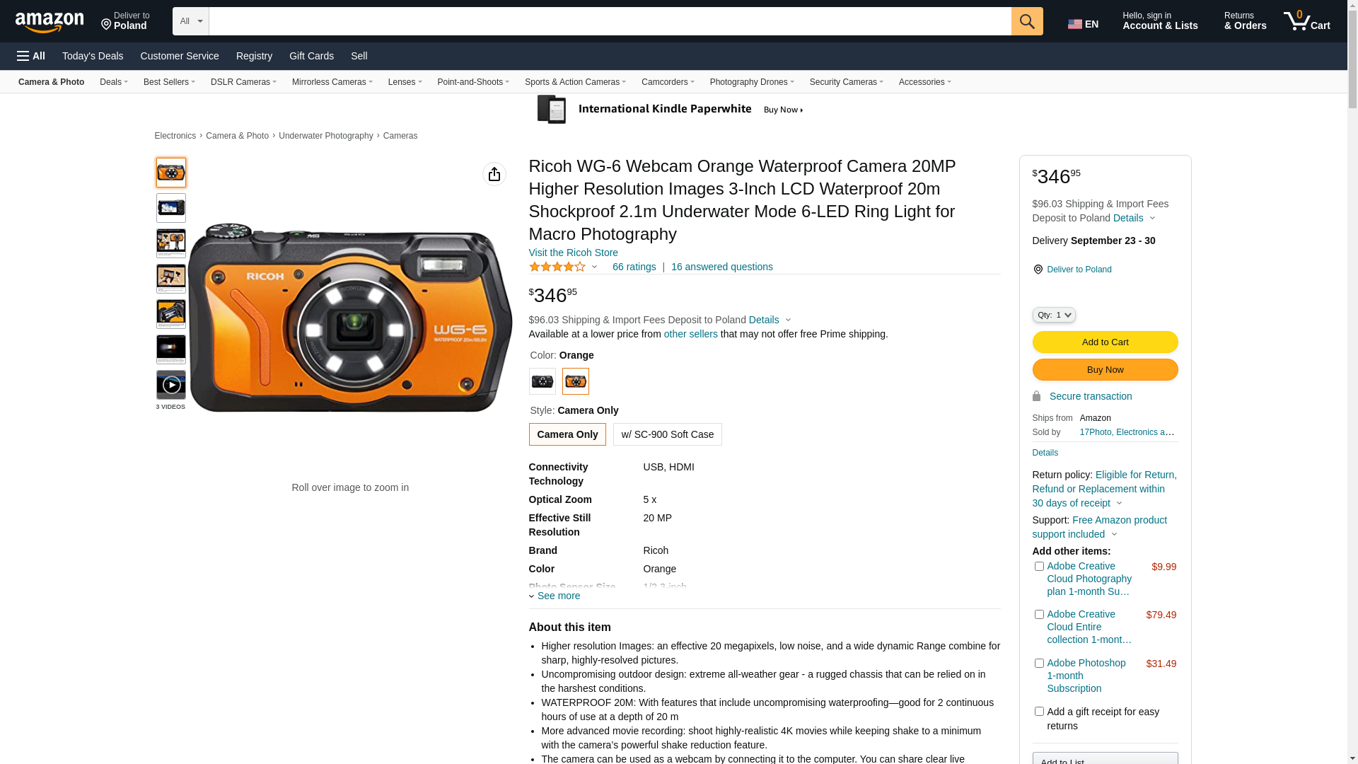Ricoh WG-6 Webcam Orange Waterproof Camera 20MP Higher Resolution Images 3-Inch LCD Waterproof 20m Shockproof 2.1m Underwater Mode 6-LED Ring Light for Macro Photography