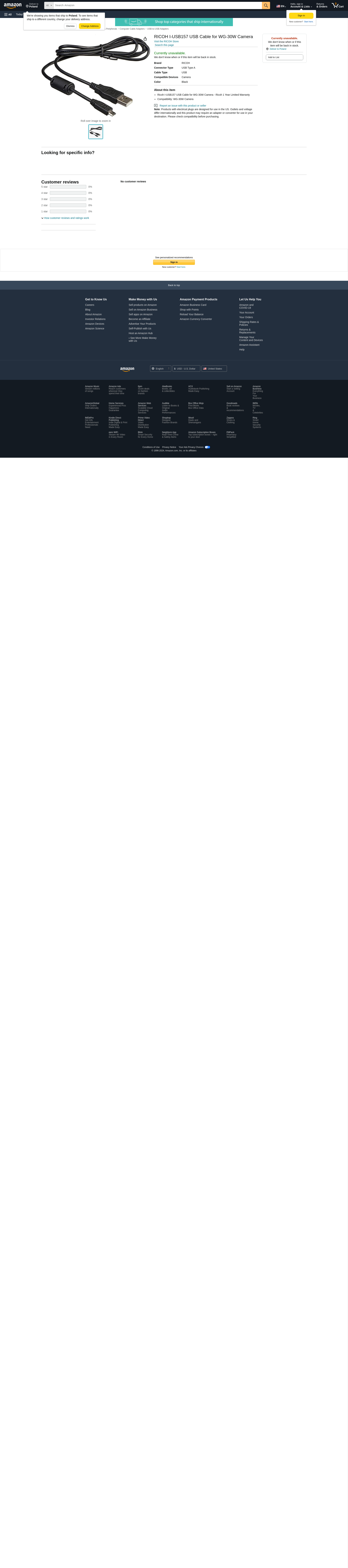 | Feature | Ricoh I-USB157 USB Cable for WG-30W Camera - Ricoh 1 Year Limited Warranty |
