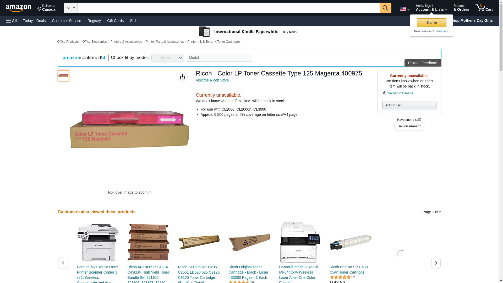 Ricoh - Color LP Toner Cassette Type 125 Magenta 400975
