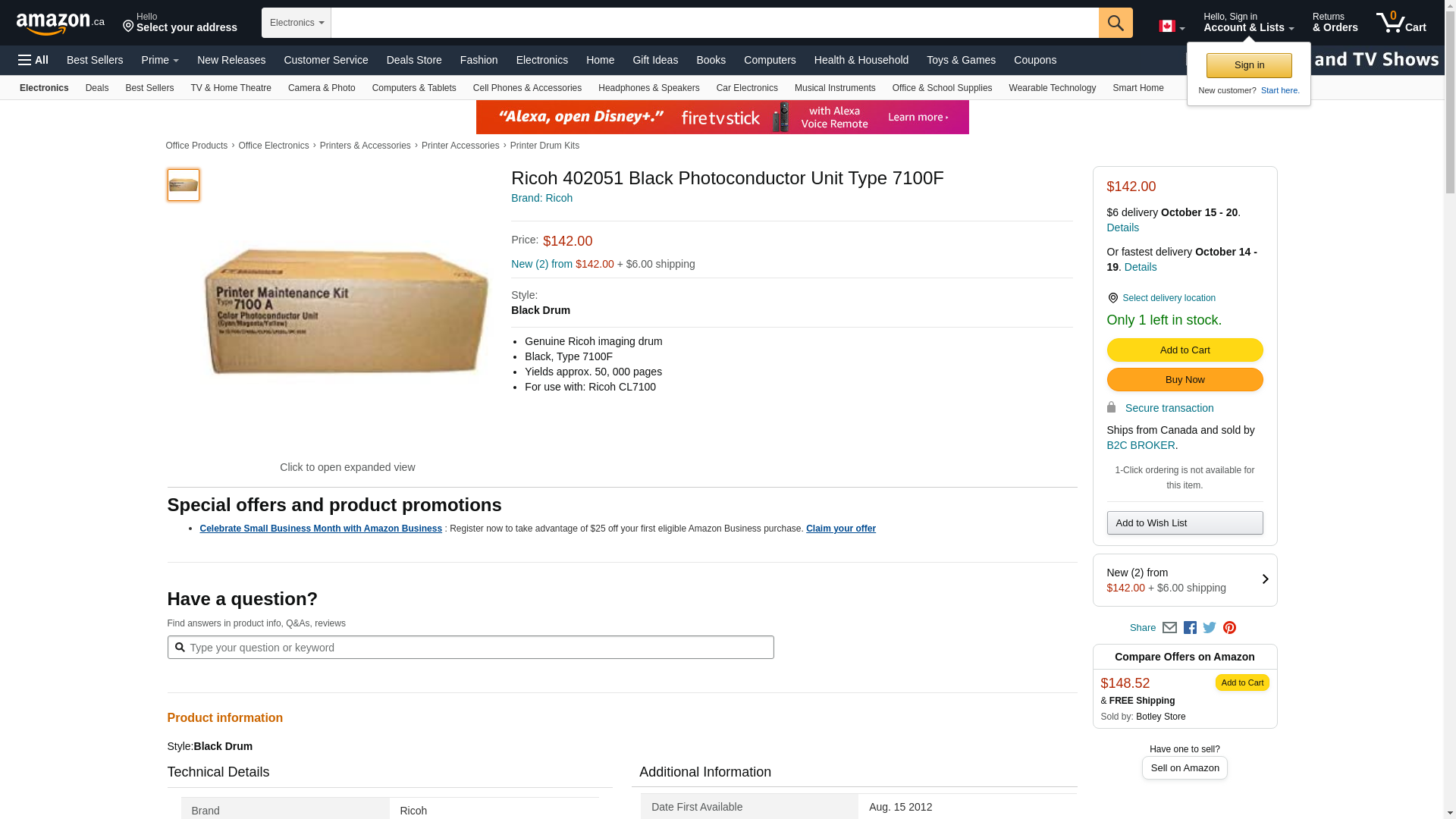 | Feature | Consumable Type: Drum kit| Printing Technology: Laser| Color: Black| Included Qty: 1| Designed For: Ricoh Aficio CL7100 |