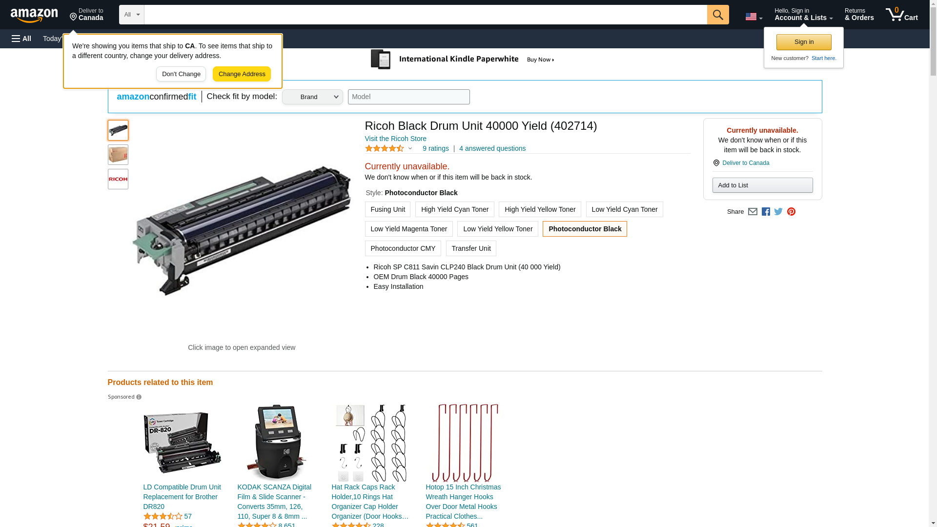 Ricoh Black Drum Unit for Printer (402714). Manufacturer: Ricoh