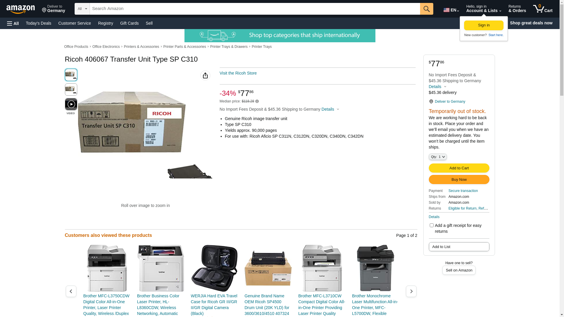 | Feature | Ricoh aficioSP C311N, C312DN, C320DN transfer unit (90,000 yield), save money |