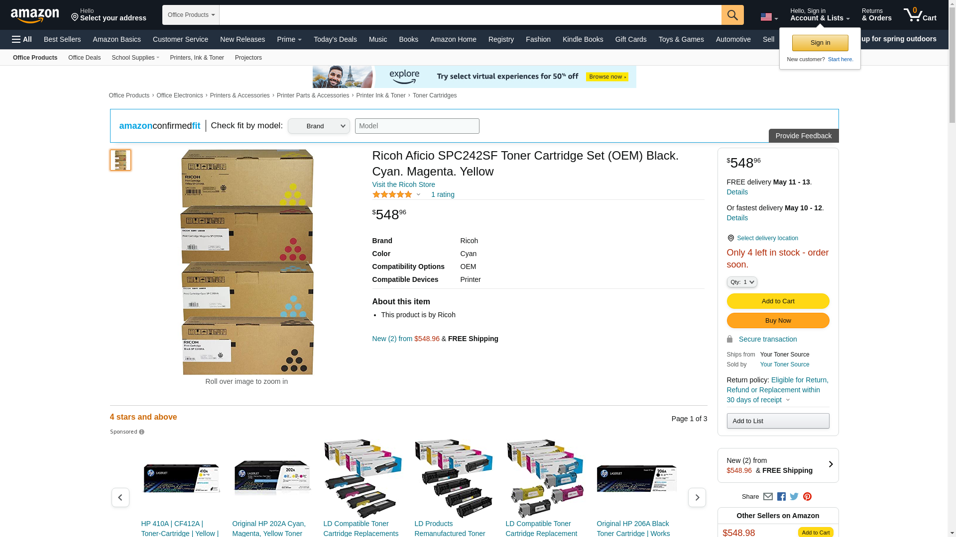 Ricoh 406475,406476,406477,406478 for SP C231N C231DN C231SF C232DN C232SF C242DN C242SF Black,Cyan,Magenta,Yellow High Yield Toner Cartridge 4 pack in Retail Packaging