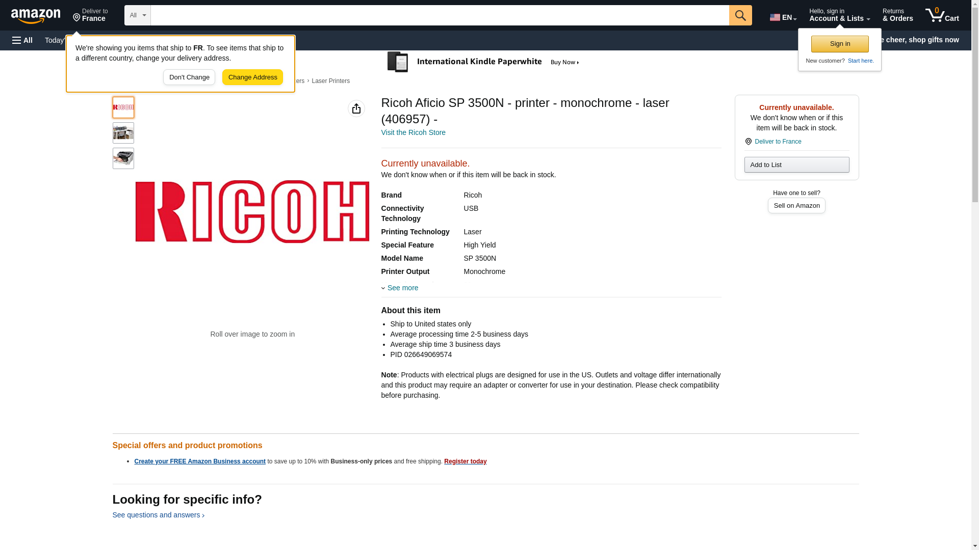 | Feature | Ricoh Aficio SP 3500N - printer - monochrome |