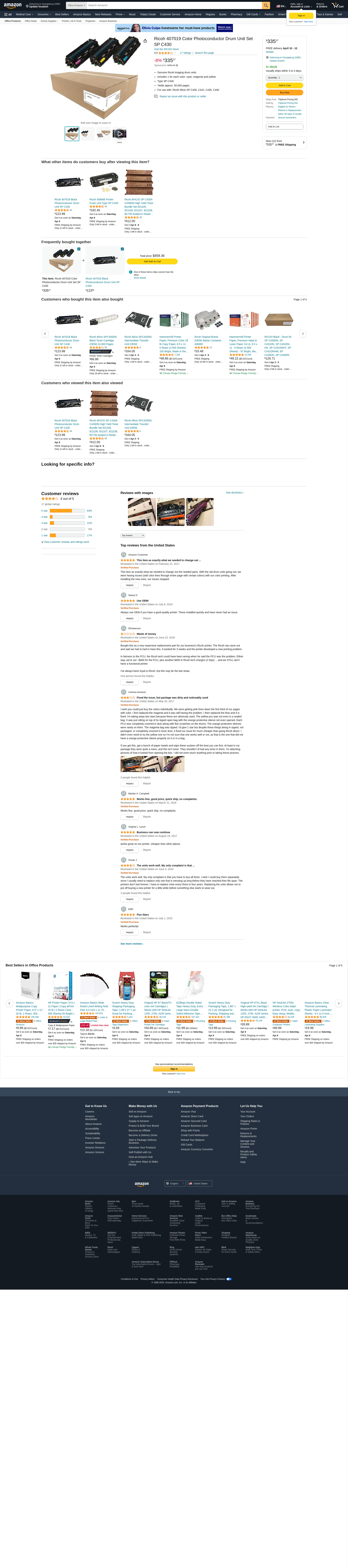 Ricoh 407019 Color Photoconductor Drum Unit Set SP C430