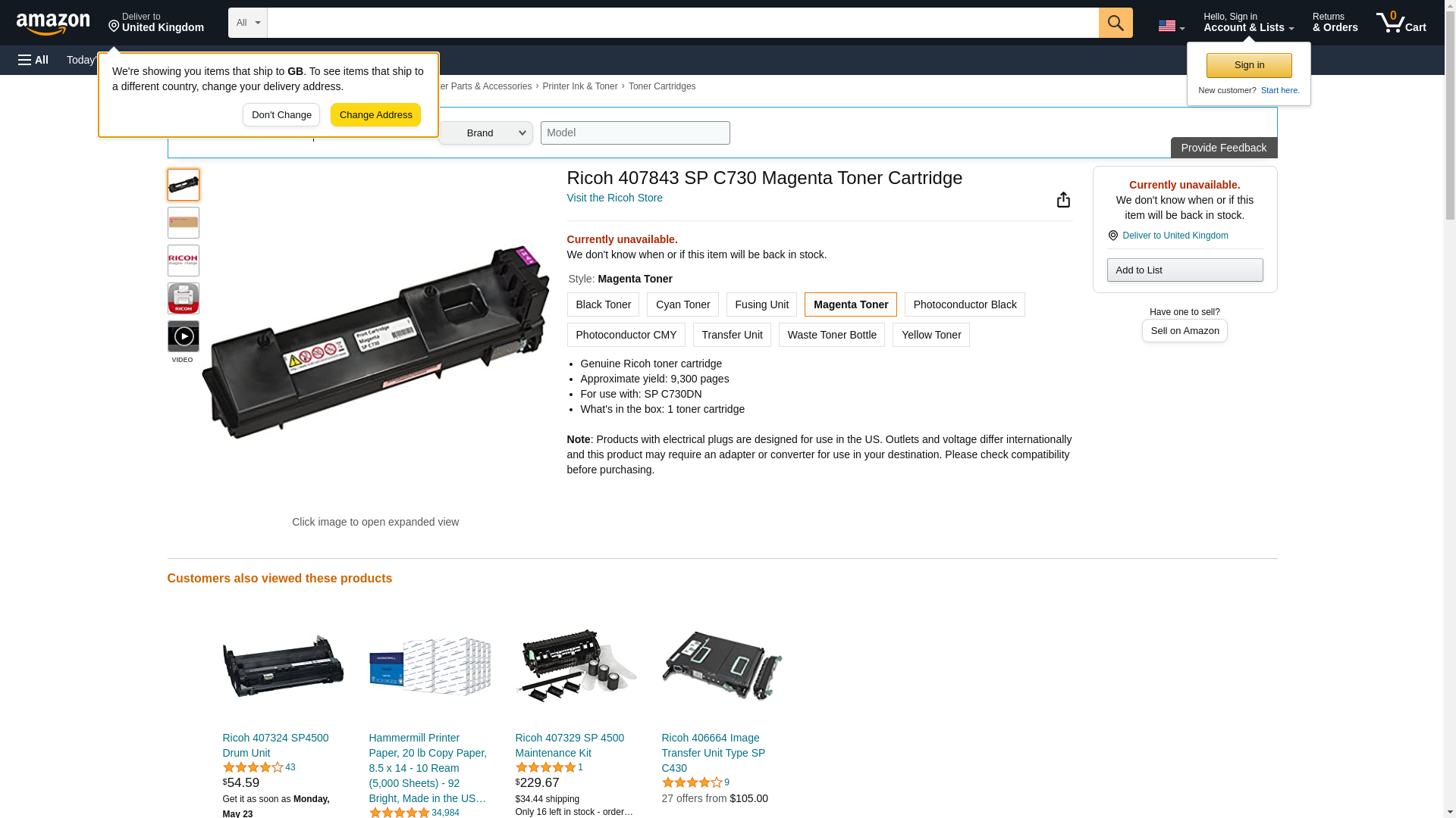 Ricoh Corp. 407125 Print Cartridge Magenta Spc730