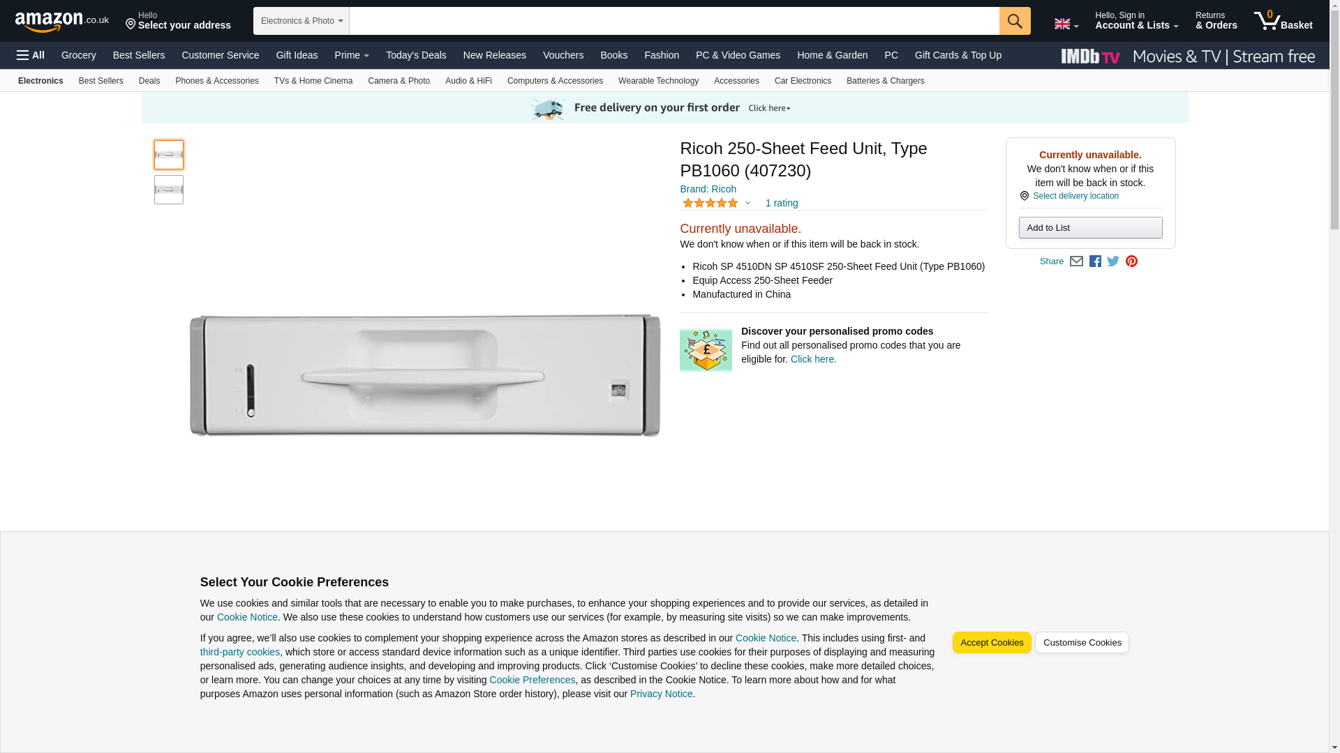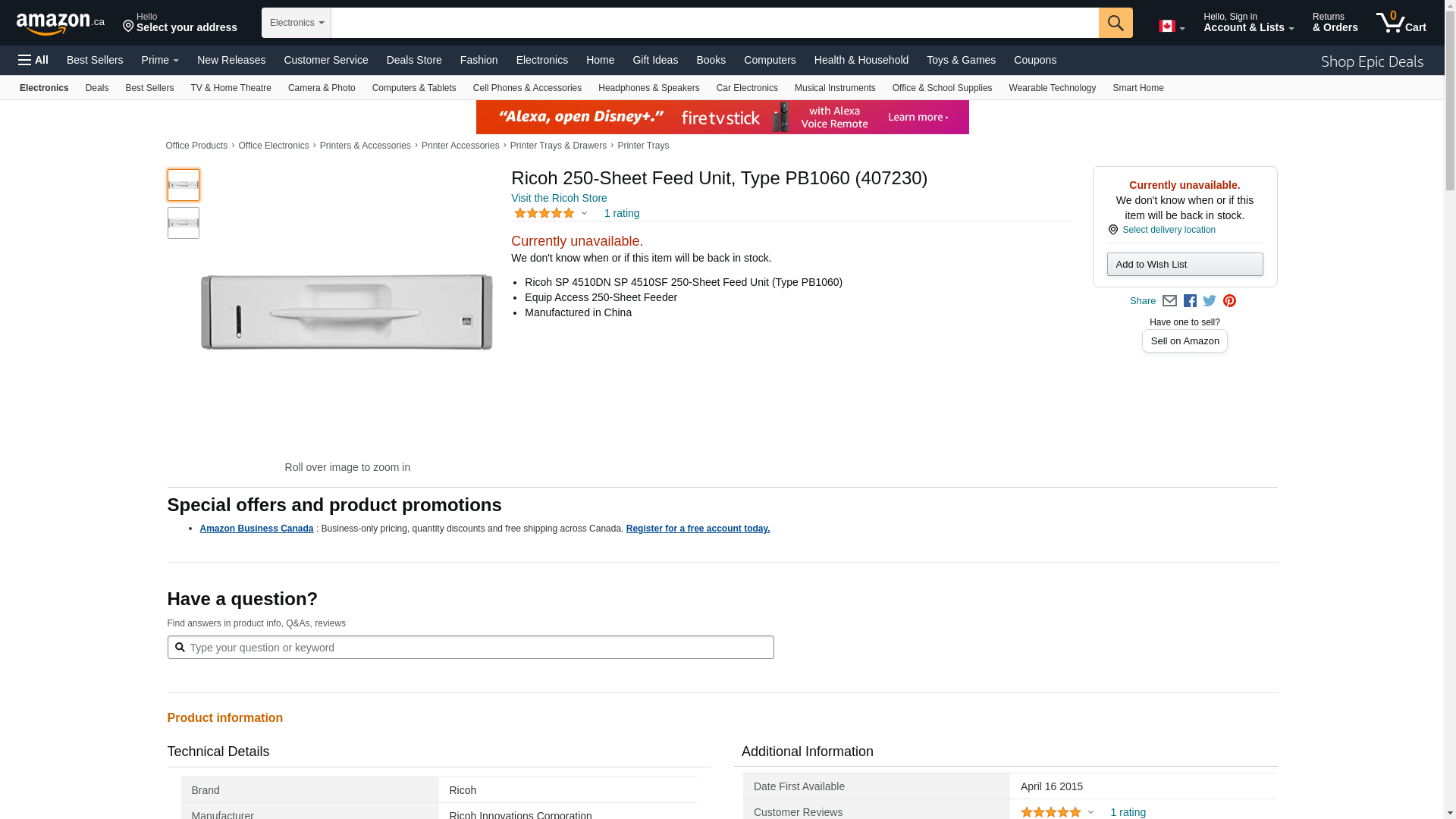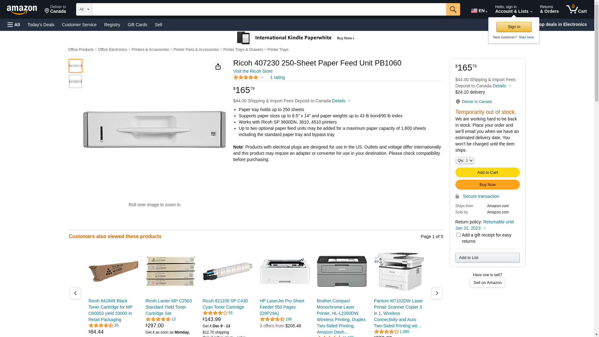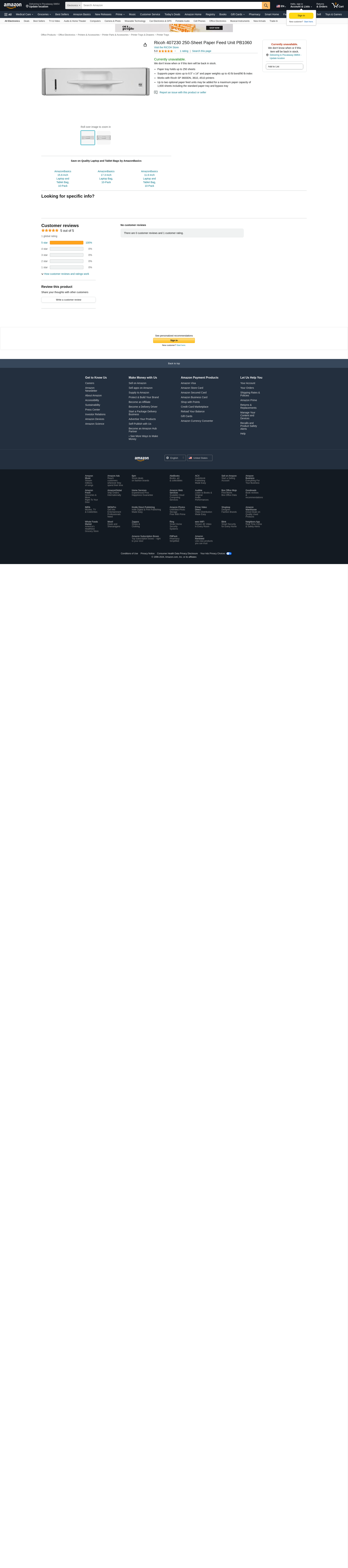 Ricoh 407230 250-Sheet Paper Feed Unit PB1060
