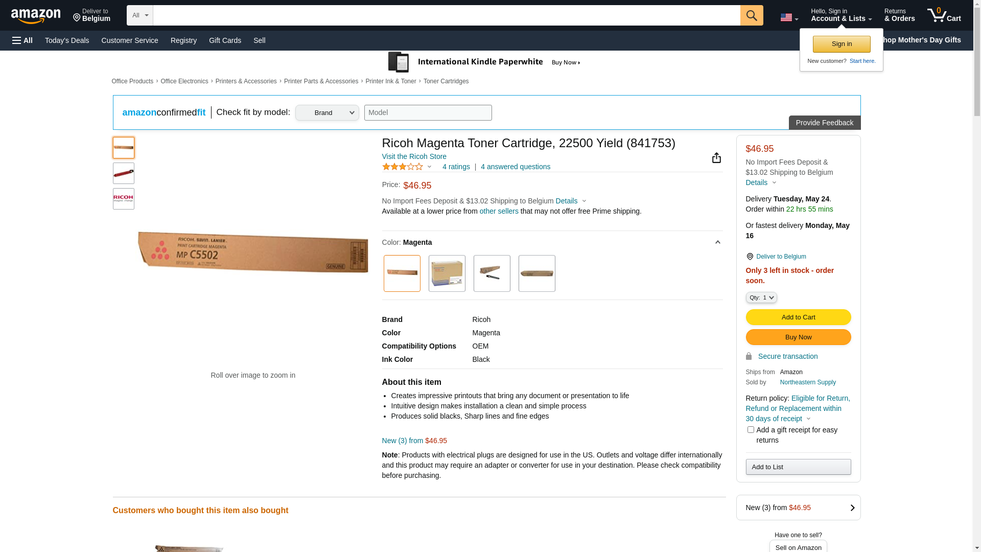 | Feature | Ricoh Aficio MP C4502 C5502 C5502A Lanier MP C4502 C5502 C5502A Savin MP C4502 C5502 C5502A Magenta Toner Cartridge (22 500 Yield) |
