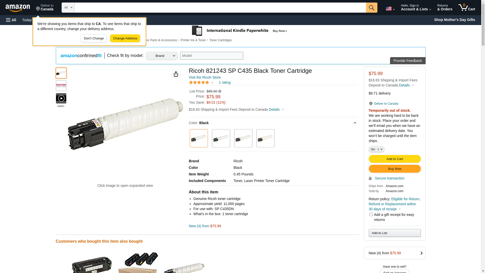 Ricoh 821243 SP C435 Black Toner Cartridge