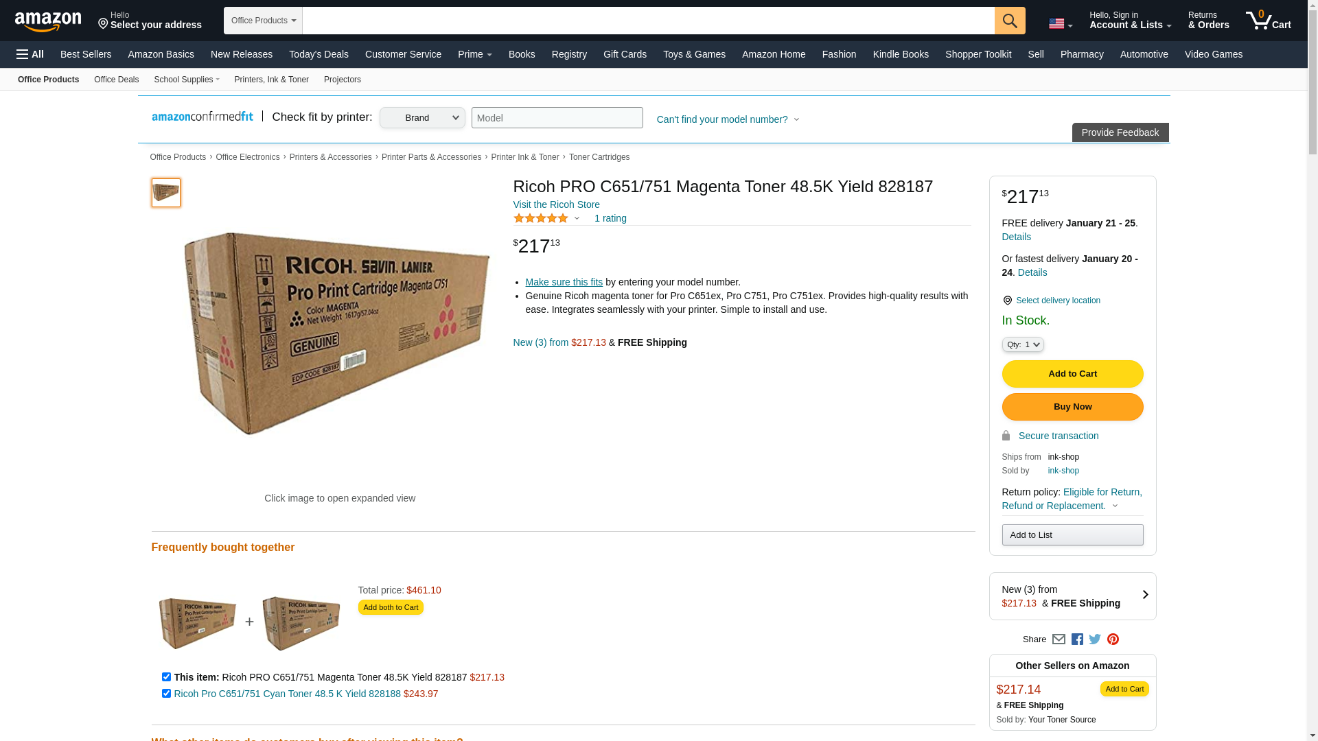 - Genuine Ricoh magenta toner for Pro C651ex, Pro C751, Pro C751ex. Provides high-quality results with ease. Integrates seamlessly with your printer. Simple to install and use.